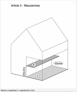 La hauteur sous plafond sur la mezzanine doit atteindre 2,50 mètres minimum.